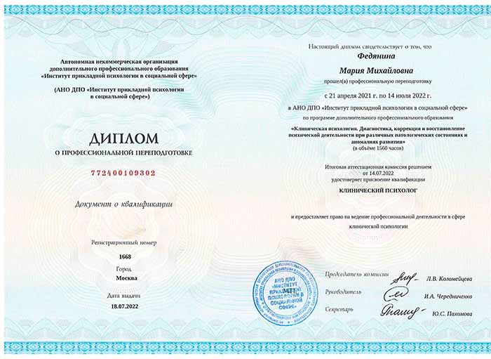 — Федянина М. М., клинический психолог центра «Гармония».